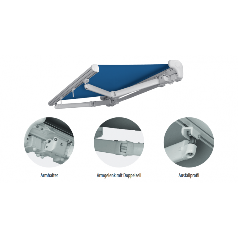 * Markise mit Kassette bzw. Halbkassette - kein zusätzliches Dach erforderlich