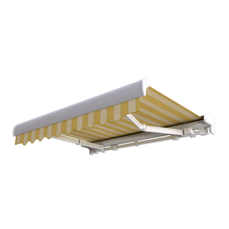 Die spezielle Armkonstruktion der KORSIKA zieht die Arme beim Schließen nach oben und verschließt die Kassette fast vollständig. Dies bietet einen dichten Witterungsschutz für das aufgerollte Tuch.