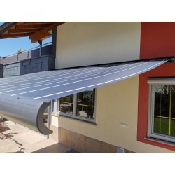 Markisen mit größeren Breiten werden zusätzlich mit Tuchwellenstützen ausgestattet, um eine gleichmäßige Spannung des Tuches zu ermöglichen.